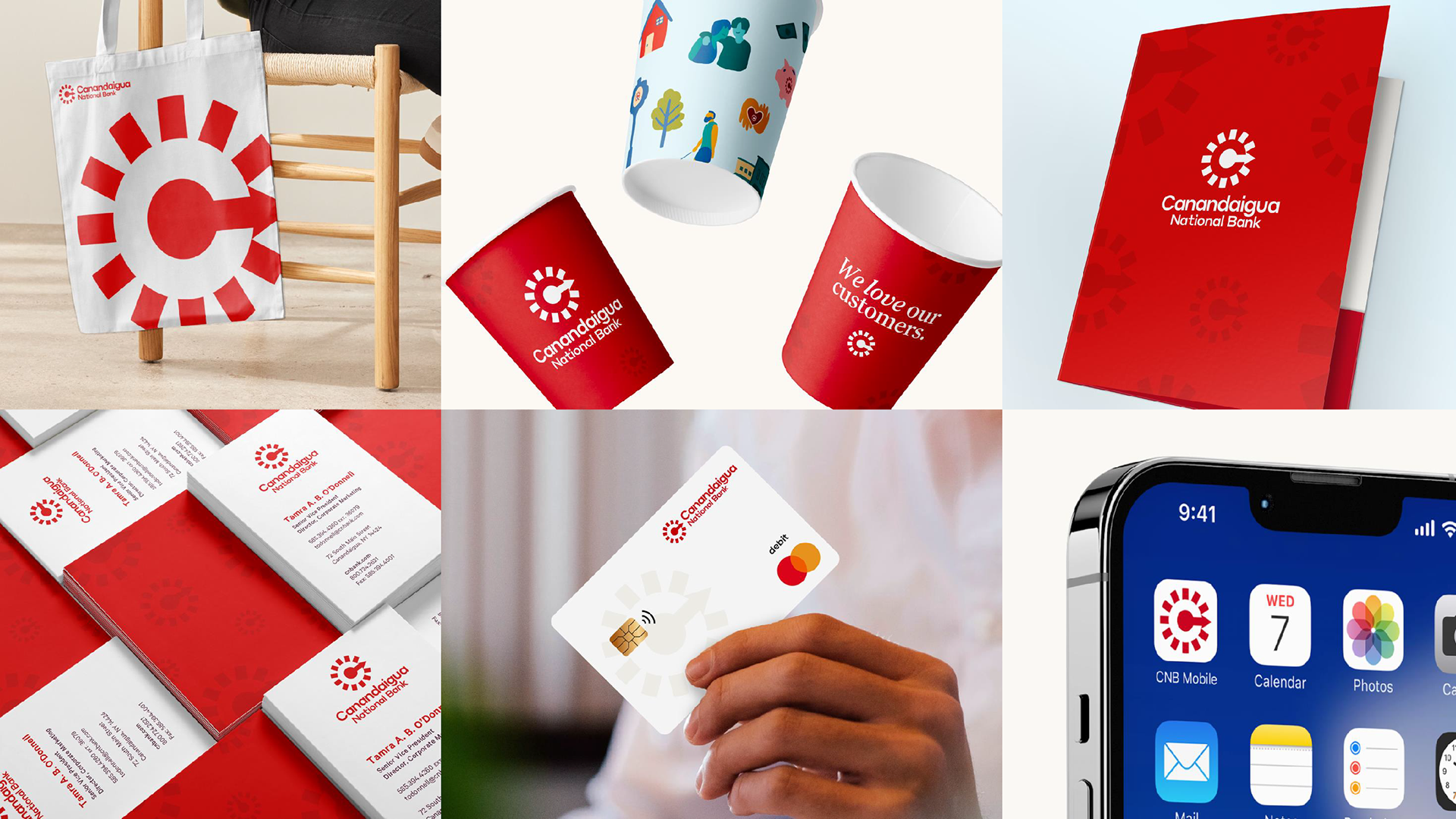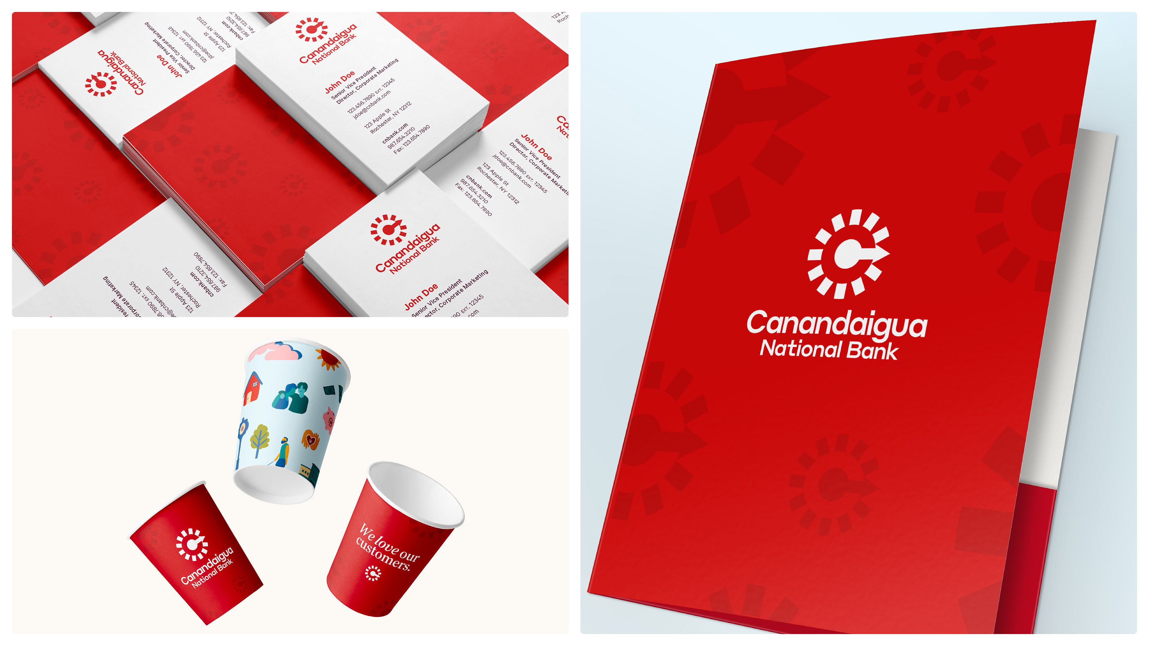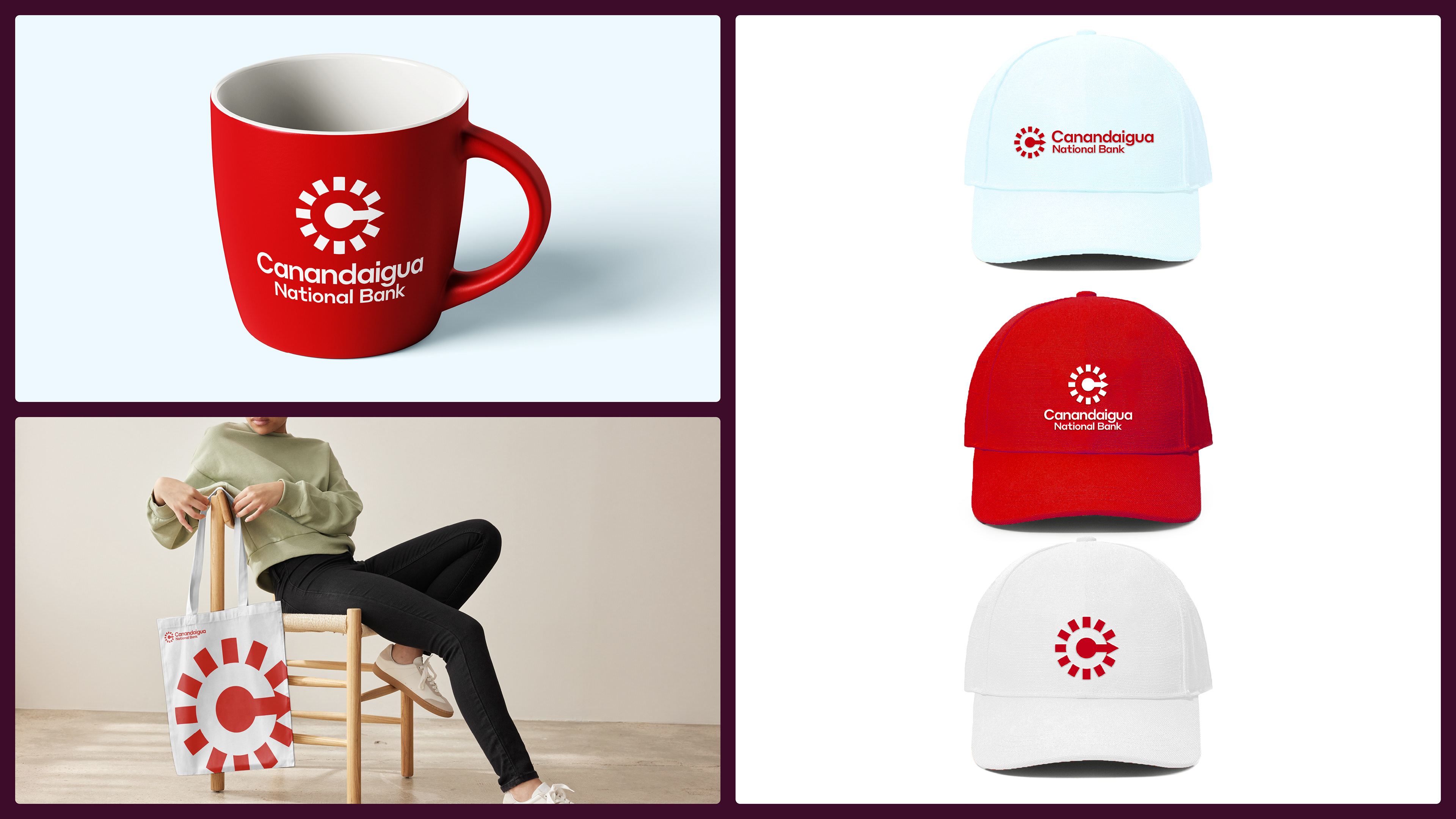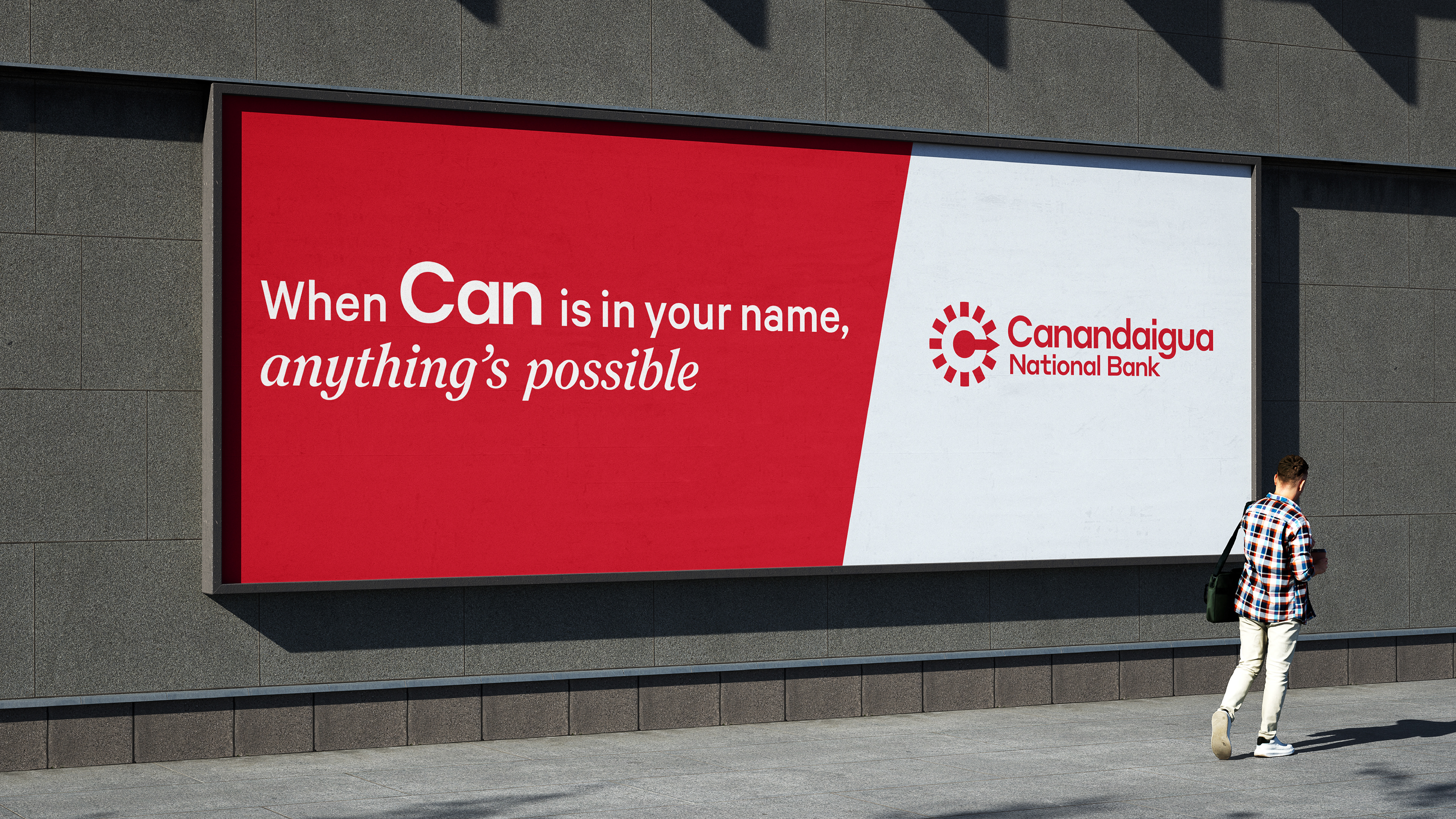 We leaned into what makes them unique, putting Canandaigua front and center with a clean, modern wordmark that’s friendly, approachable and bold. At its side is an evolved monogram. It is an abstract symbol inspired by their iconic clocks seen all throughout the communities the banks operate in. The ticking hands not only create a sense of movement and energy–echoing the vitality of the people they serve–but it also forms a subtle “C” in the center of the mark, a quiet yet intentional tribute to the Canandaigua National Bank name.