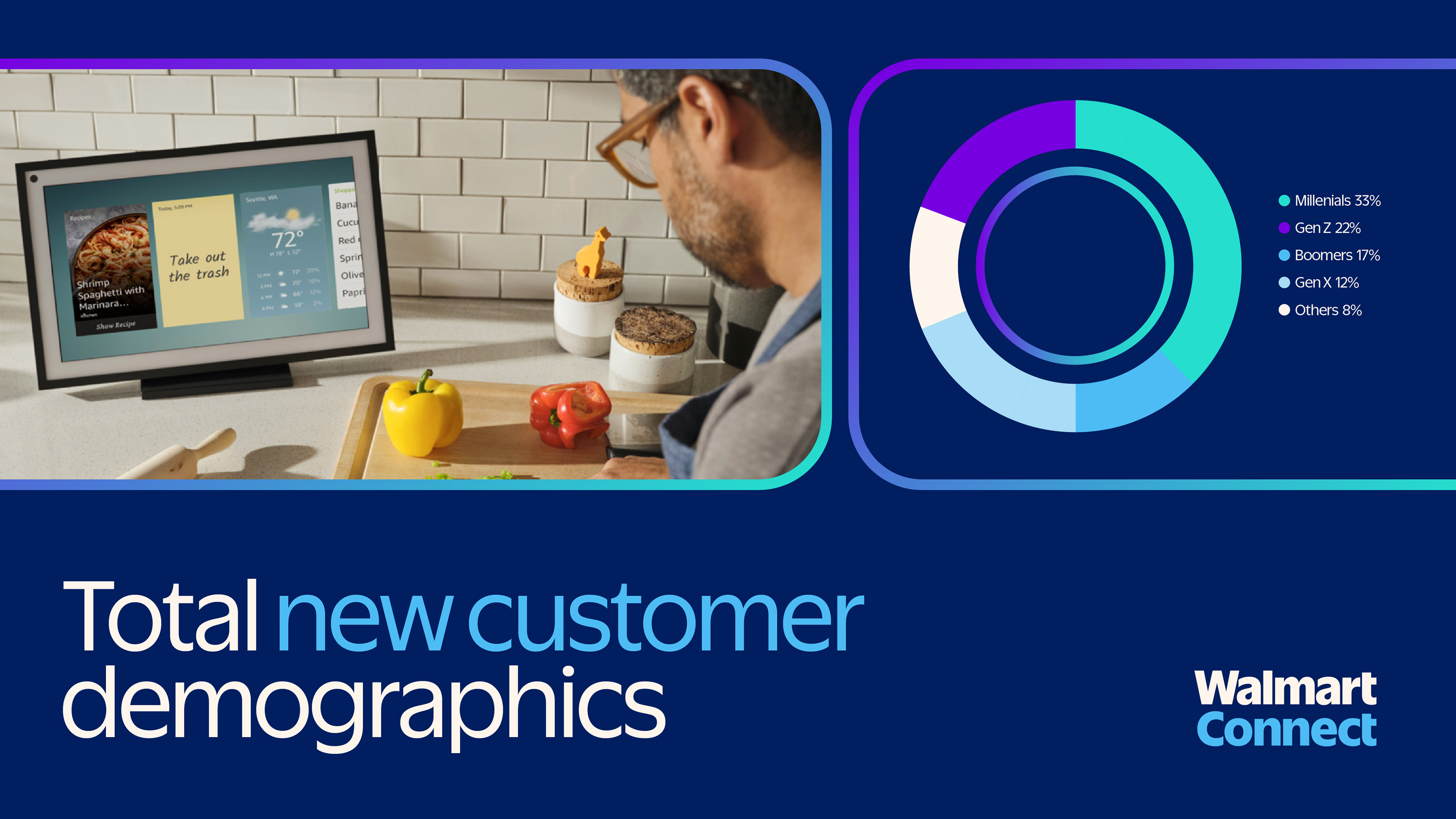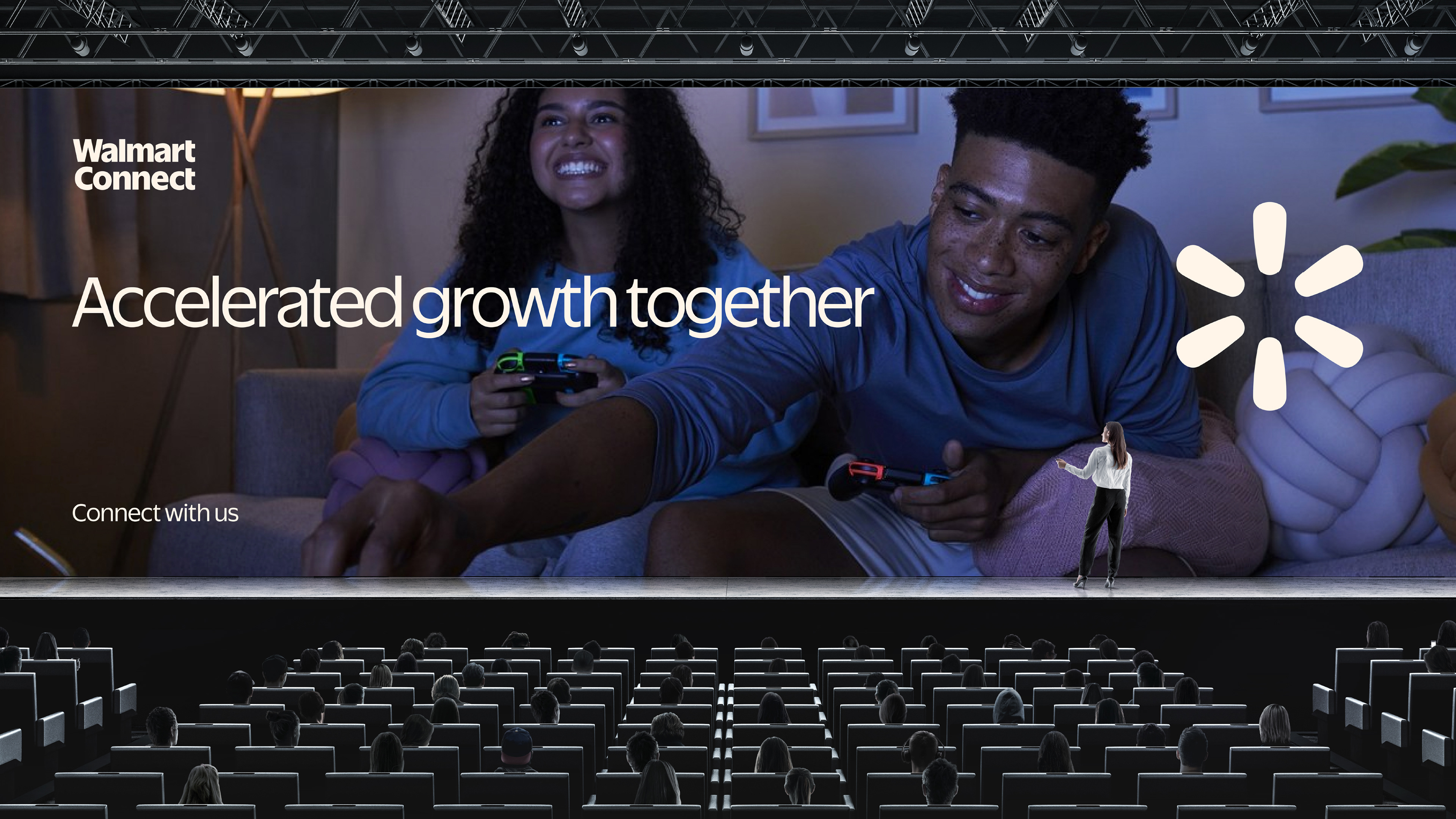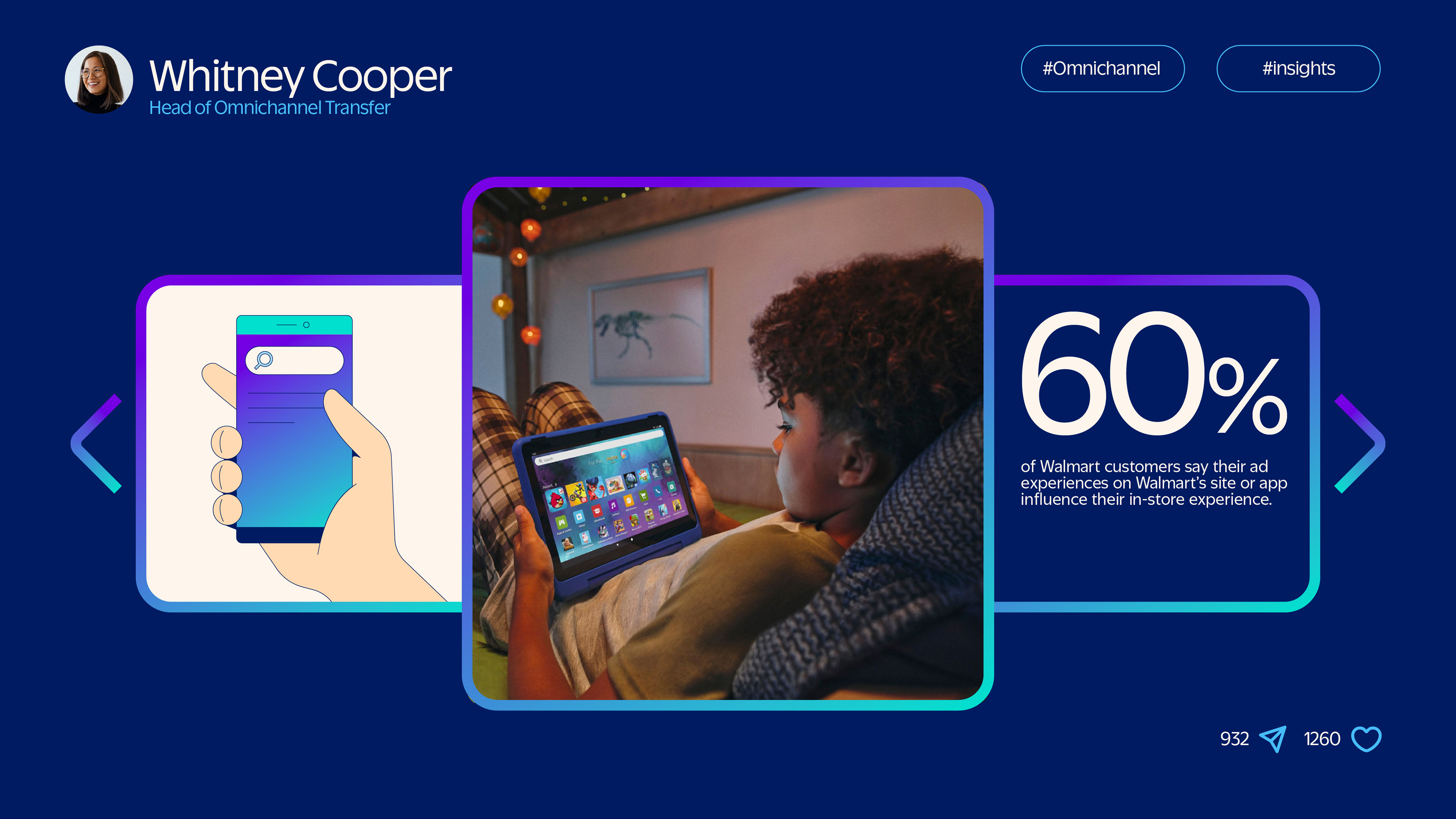 The visual update within the new Walmart branding emphasizes connection via a linear gradient frame device referencing screens. From the glow on photography and within typography, the graphic system uses color in vivid ways to speak to rich advertising media and other content engagement topics related to retail and connecting to prospective Walmart shoppers.